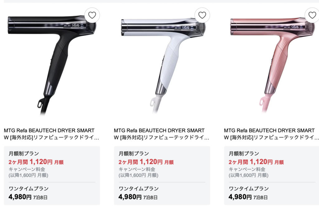 「約1000円/月額」でリファドライヤーのレンタルができる場合も。